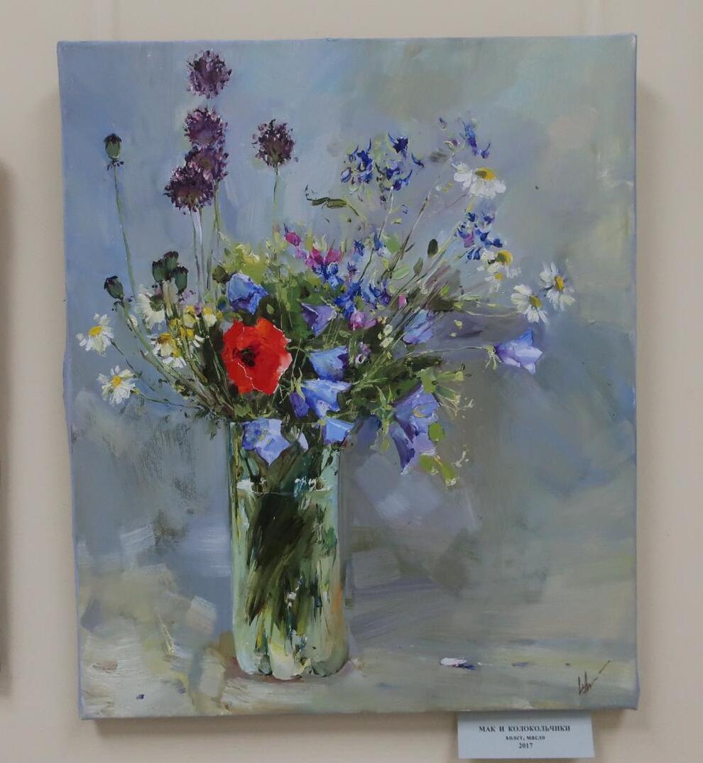 - Я девочка, я цветочки люблю, – улыбается она. – На этой выставке представлено много натюрмортов с цветами. Люблю писать портреты людей, которых вижу как некие красивые цветы, замечая какие-то яркие выразительные детали в их образах. Люблю создавать и небольшие пейзажи.