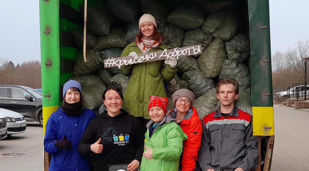 Гатчинские волонтеры отправили 248 мешков с крышечками в Петербург на переработку.