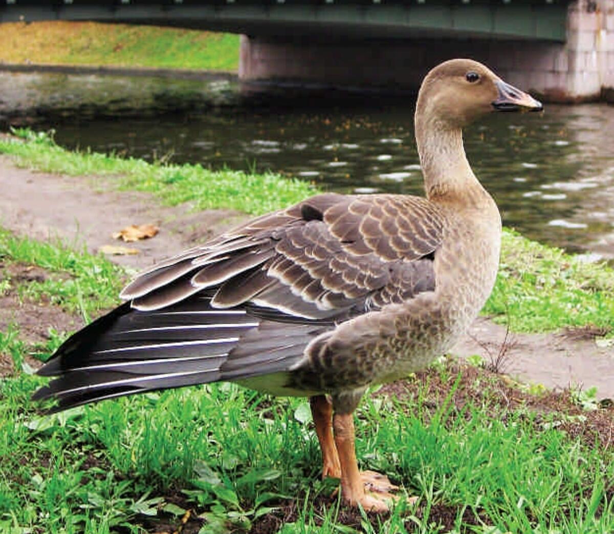 Гуси, как и лебеди, встречаются в Северной столице только на пролёте – весной (апрель – май) и осенью (сентябрь – октябрь). Крупные стаи гусей нередко пролетают прямо над городом, обычно на большой высоте. При этом они хорошо заметны, а гортанная гусиная перекличка доносится и до городских улиц. Гусей надо искать на местах их кормёжки. Питаются они в основном проростками зелёной травы, а также клубнями и корешками травянистых растений. Одна из таких миграционных гусиных стоянок испокон веков существовала на прибережных лугах в дельте Невы. С развитием городской застройки места для гусей становилось все меньше, и сейчас кормящиеся стаи можно наблюдать весной лишь в некоторых местах вдоль южной окраины города.