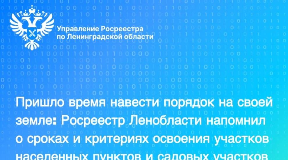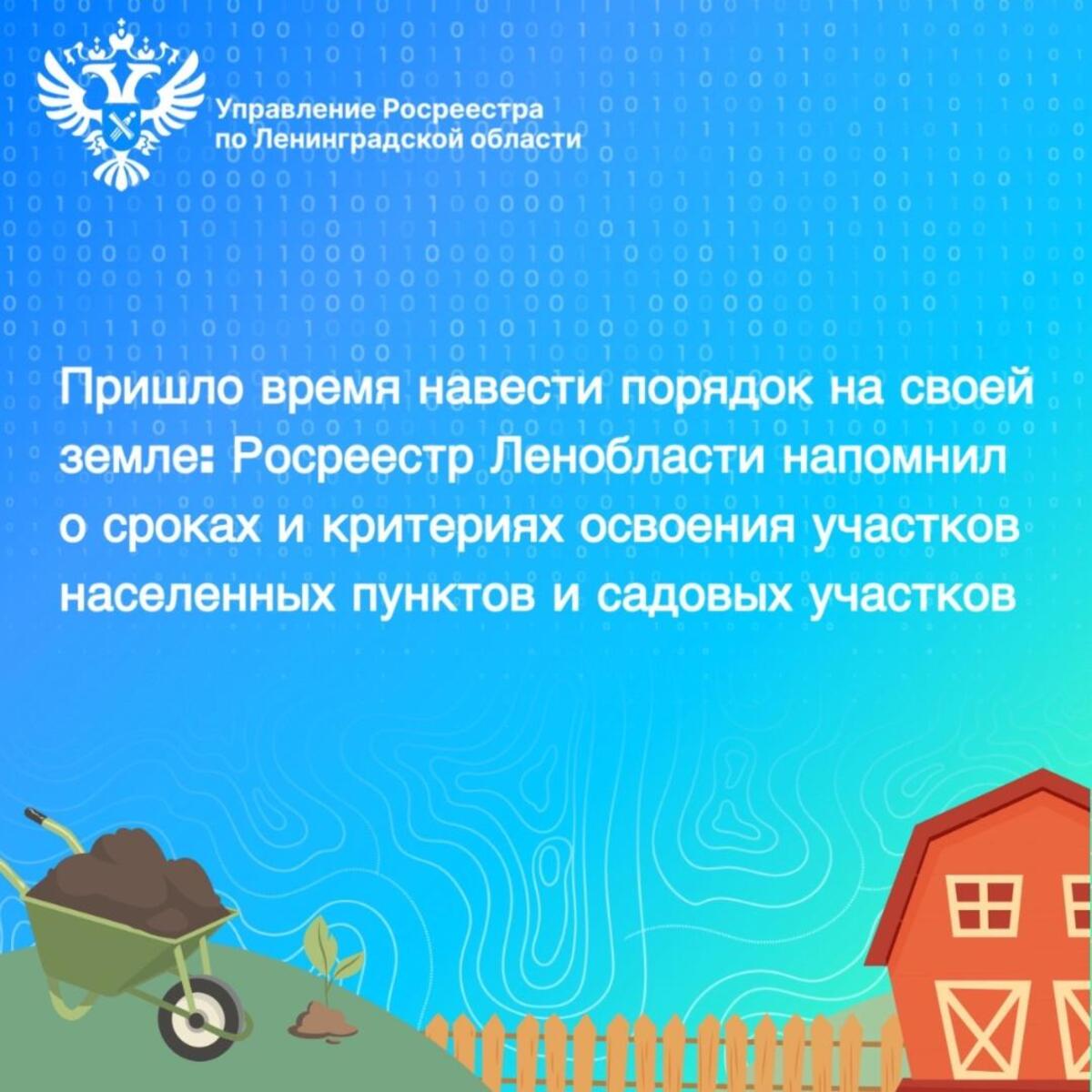Росреестр Ленобласти напомнил о сроках и критериях освоения участков населенных пунктов и садовых участков