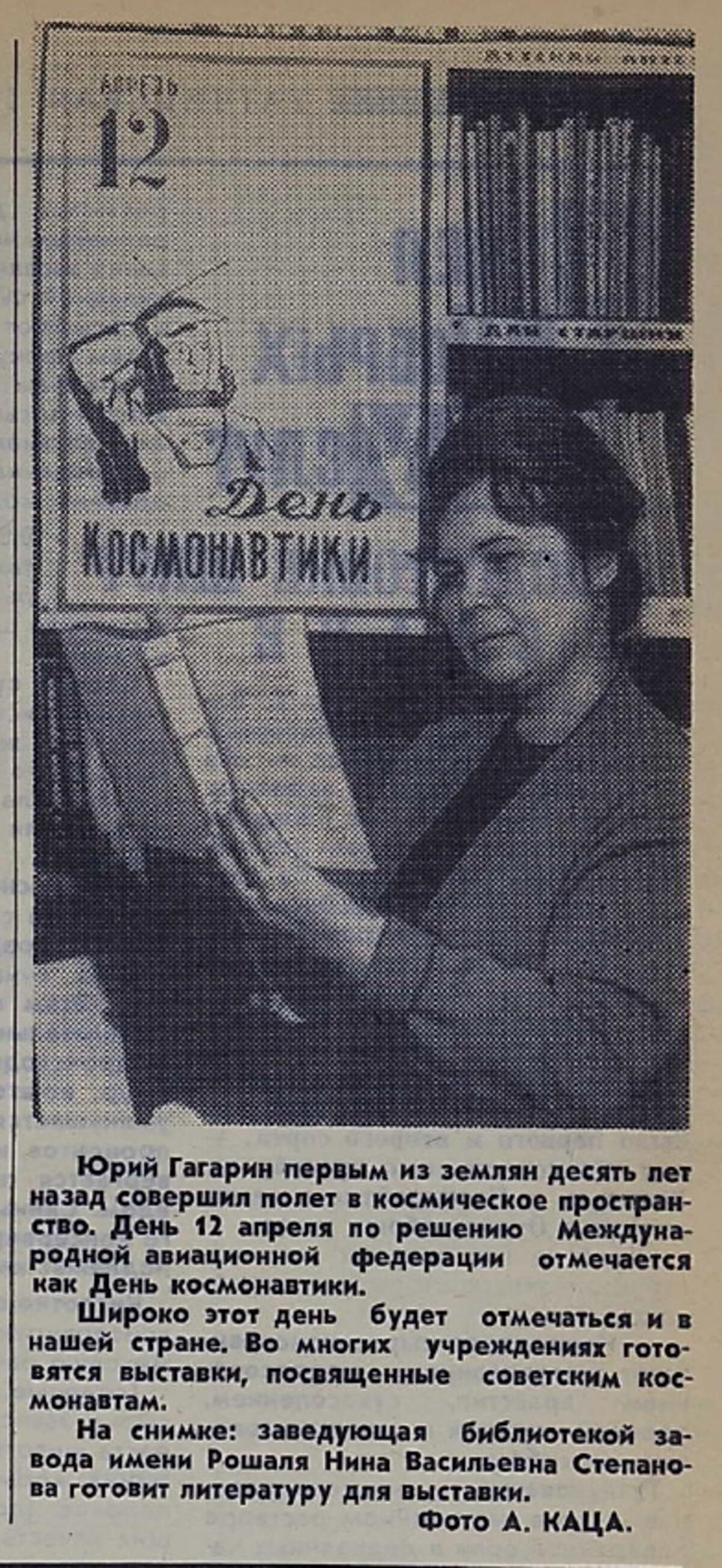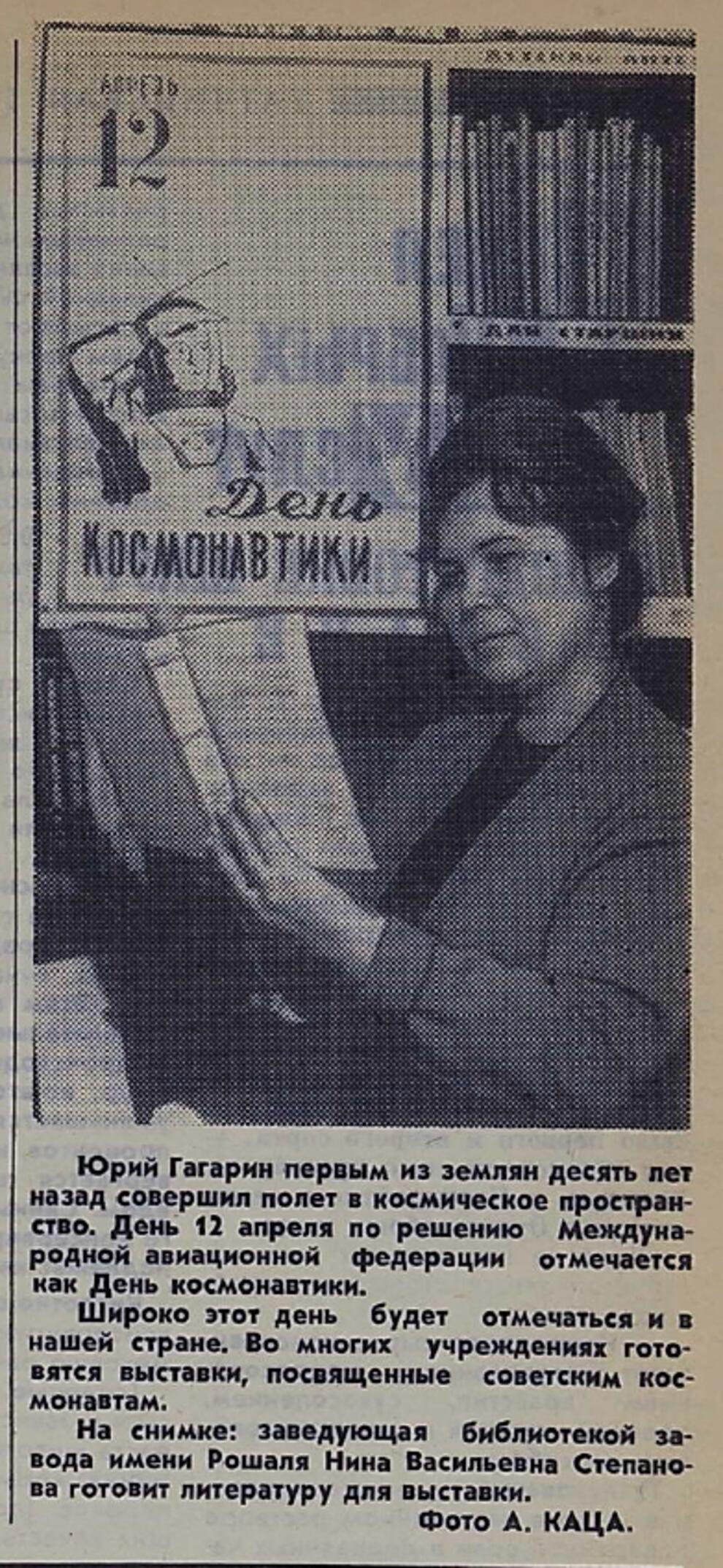 В номере «Гатчинской правды» от 10 апреля 1971 года опубликована статья Константина Тараненко «Наши космические друзья»: