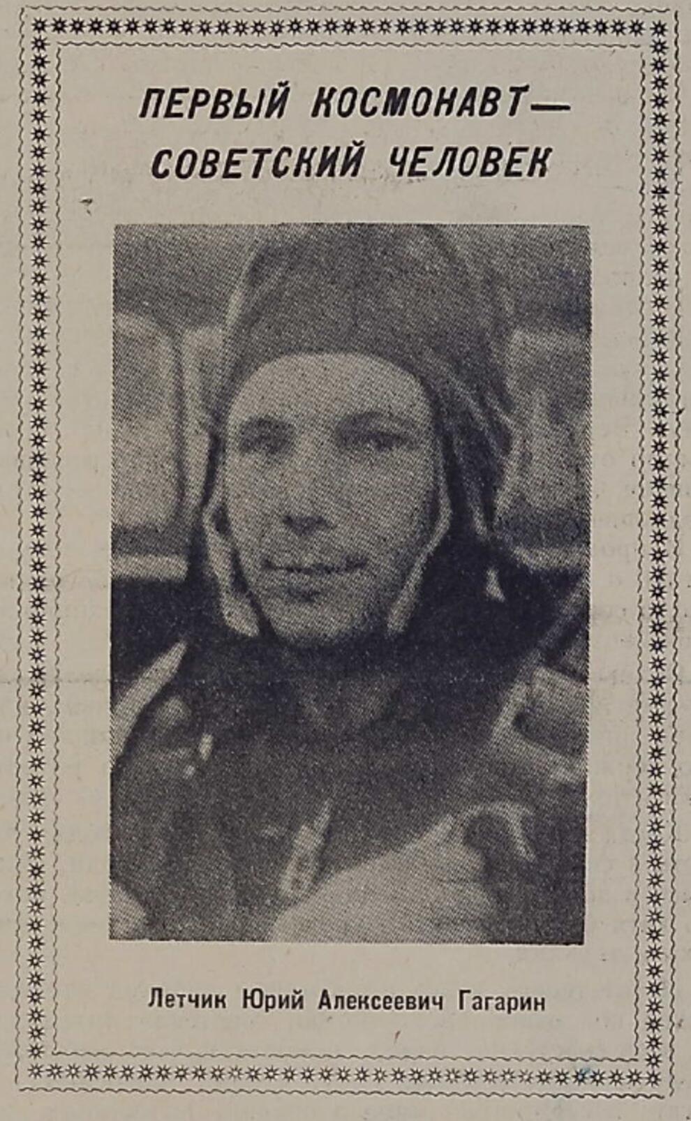 – Наша Родина, – говорит он, – идет впереди всех стран по освоению космоса. Небывалый расцвет советской науки – есть результат победы социализма в нашей стране. Восхищение, гордость за свою страну, которой под силу такие выдающиеся научные подвиги, вот что я испытываю сейчас. Первый космонавт Юрий Гагарин происходит из трудовой, колхозной семьи, он подлинный сын народа и этим особенно дорог нам…»