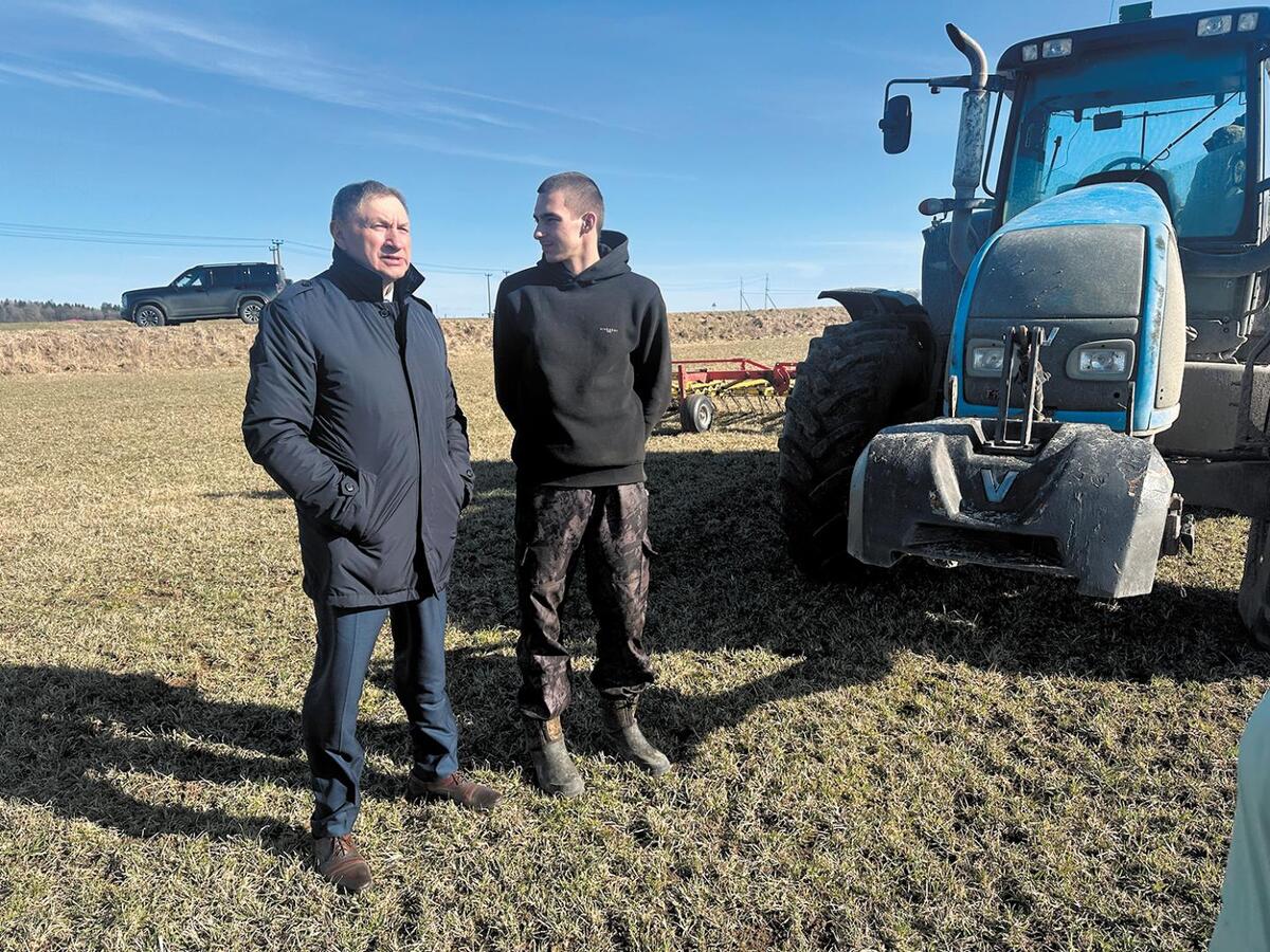 — Сейчас в основном на белорусских и на наших машинах работаем, меня ещё ни разу они не подводили! — отметил механизатор Игорь, который трудится на посевной в Бегуницах (на фото он с депутатом Госдумы Сергеем Яхнюком). Работа ответственная, и ему она в радость, поскольку даёт возможность внести свой вклад в общее дело, да и деньгами не обижают.