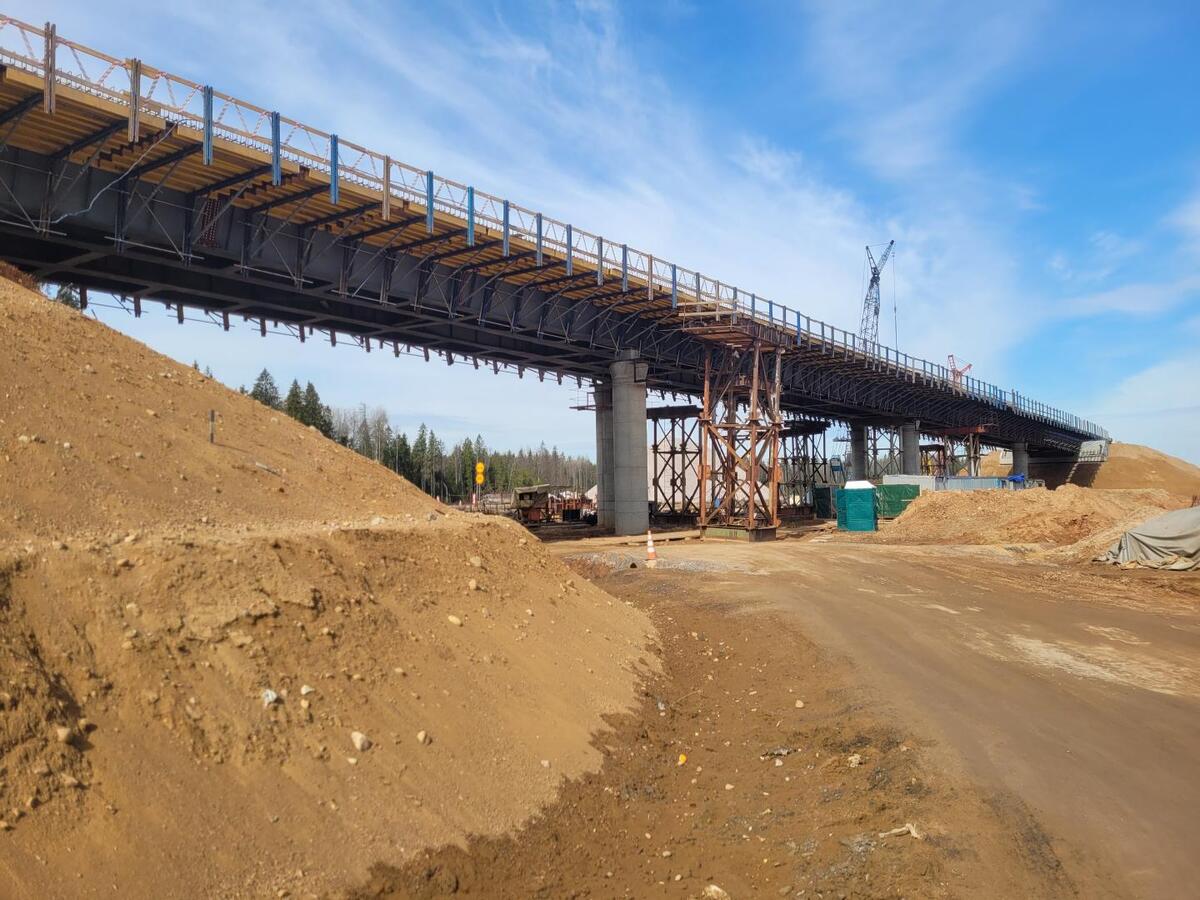 АО «ВАД» обновляет 57 километров федеральной трассы Р-23 в Ленинградской области. На участке с 54 по 111 км дорожники одновременно ведут капитальный ремонт, реконструкцию и новое строительство: увеличивают количество полос с двух до четырех и шести, строят новые развязки и путепроводы. Работы распланированы до 2028 года, часть из них завершат в сентябре 2026 года.