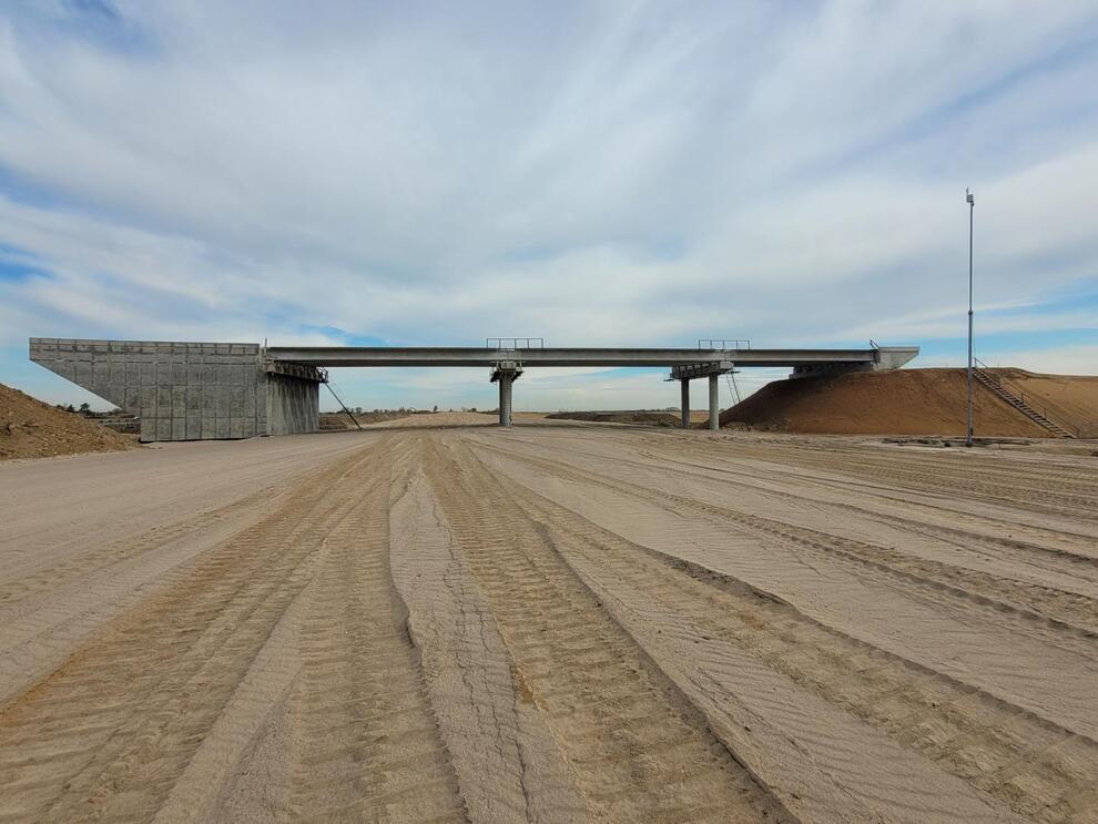 Строительство нового участка с 59,6 по 68 км начато в августе 2024 года. Специалисты ВАД возводят 8,35 км шестиполосной трассы в обход населенных пунктов Никольское и Новое Колено. Объект включает двухуровневую транспортную развязку, три путепровода, два скотопрогона. «Путепровод в составе транспортной развязки готов на 60 %, два других – на 40 % и 35 %. Земляные работы на участке выполнены на 47 %. Общая готовность объекта составляет – 45 %», – сообщает Денис Воронянский.