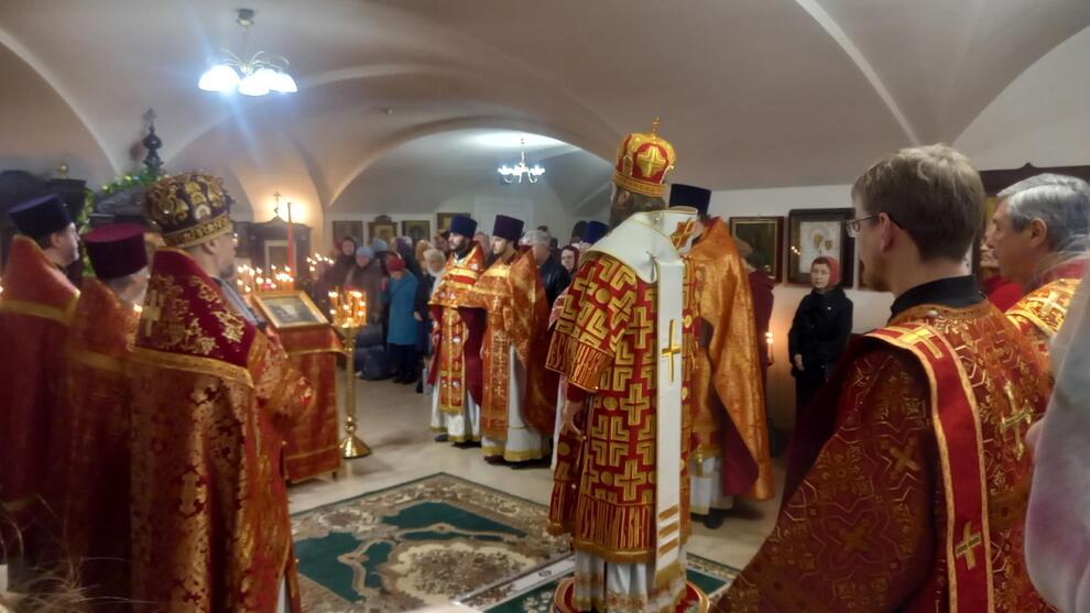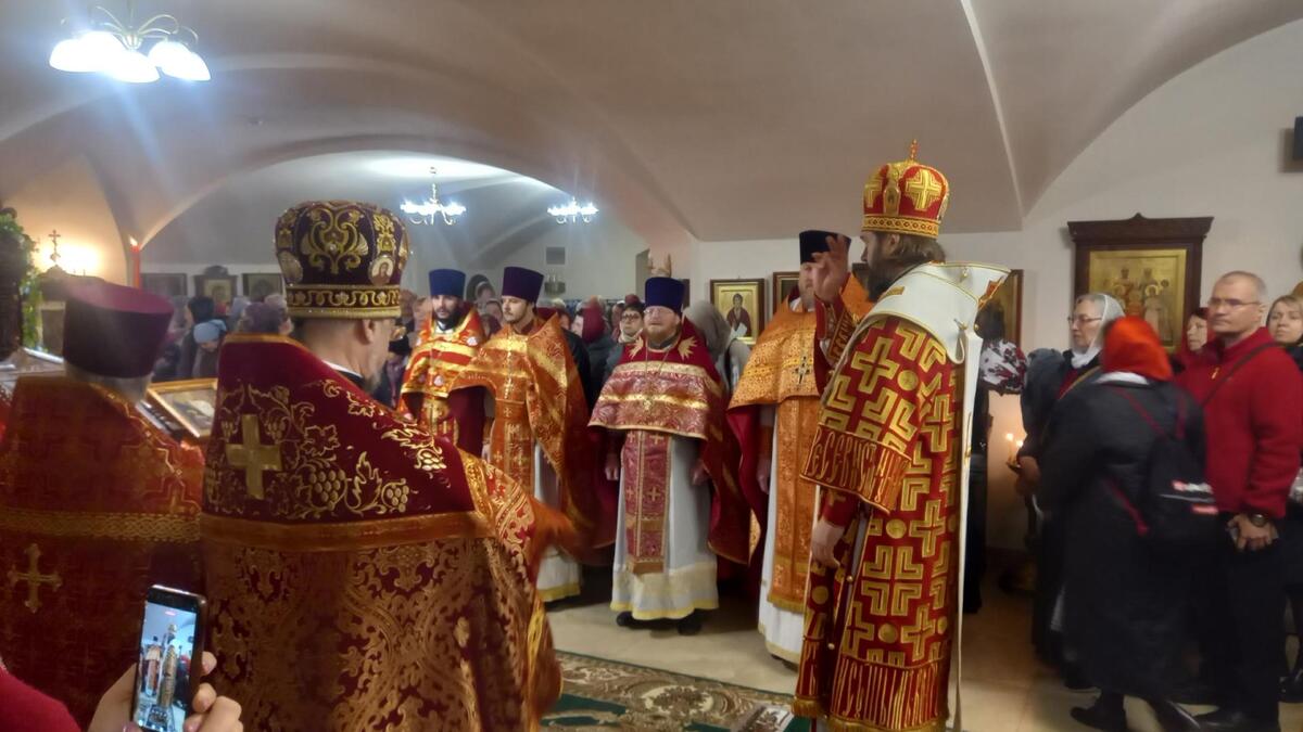 Утром в нижнем храме Павловского собора прошла Божественная литургия, которую возглавил епископ Гатчинский и Лужский Митрофан.