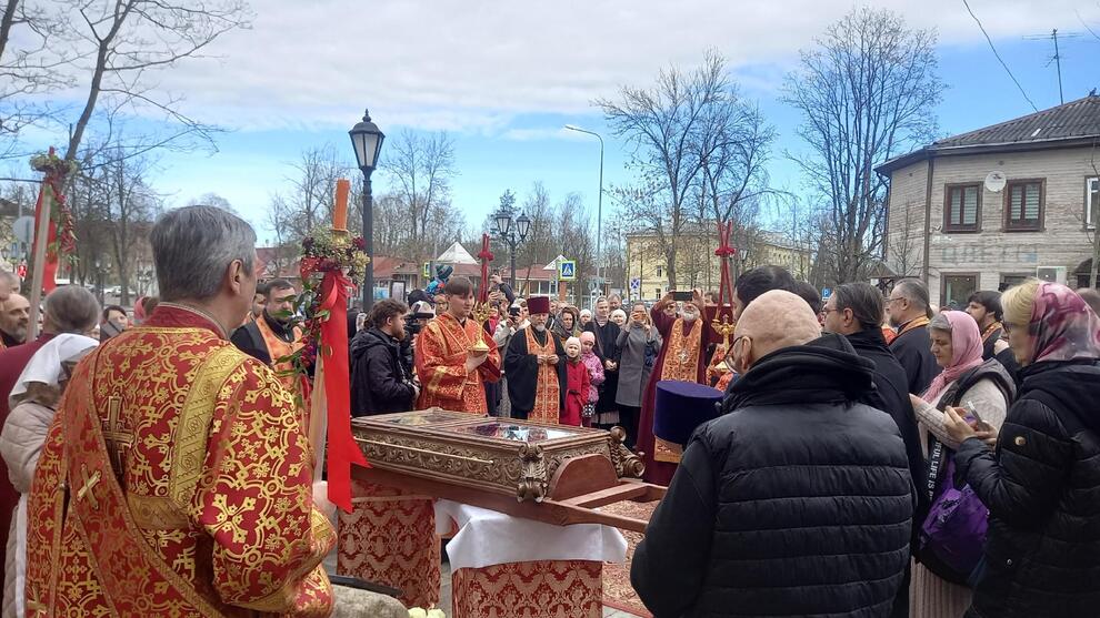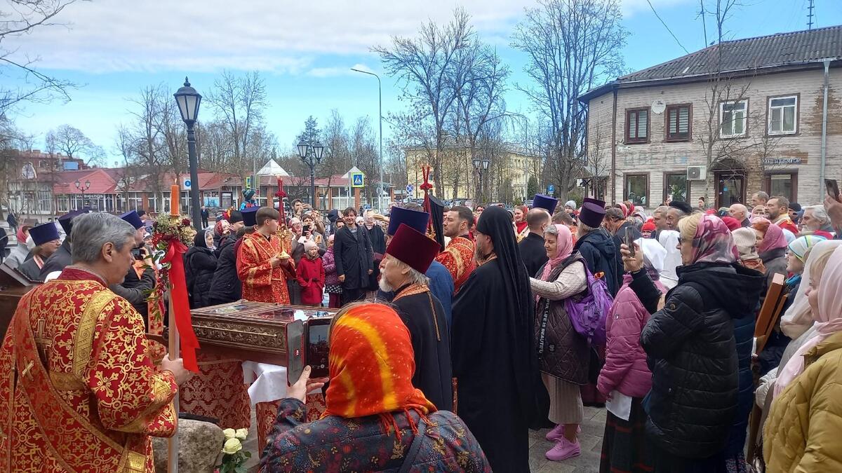На месте дома м. Марии на пересечении улиц Соборной и Карла Маркса отслужен молебен.