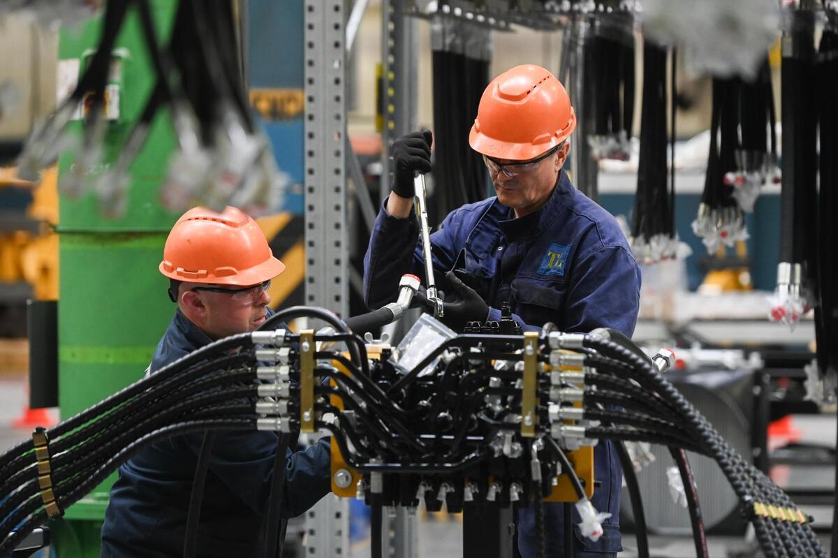 Губернатор осмотрел цеха завода «Тосно», который простаивал после ухода иностранного инвестора в 2022 году: сварочный и сборочный, где ему показали конвейер, готовые экскаватор-погрузчик, бульдозер, коммунальную машину и особенно новый пилотный экскаватор-погрузчик.