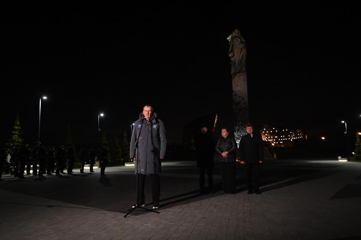 «Сегодня, в День памяти жертв геноцида советского народа, мы закладываем новую традицию. У главного мемориала памяти жертв геноцида наших граждан в годы Второй Мировой войны мы закладываем традицию памяти: у каждого из нас есть отцы, деды, прадеды, воевавшие на той страшной войне. У каждого из нас есть родные, которые погибли на фронте.