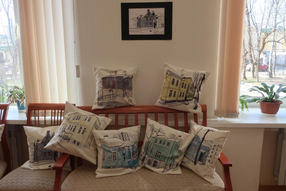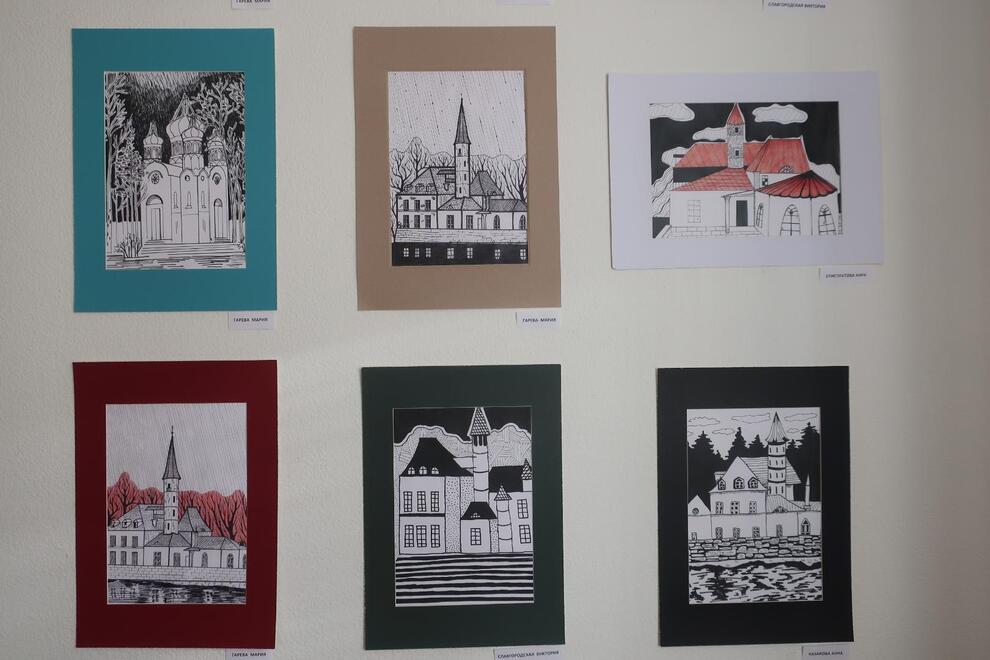 Серия графических работ «Гатчина» вдохновлена малоэтажными историческими домами города. Коренные жители Гатчины без труда узнают эти чудом сохранившиеся старинные дома, которые встречаются на каждой улице в центральной части города. В серии графических листов «Приорат» студенты подчеркивают нестандартную, уникальную красоту Приоратского замка. Графические зарисовки стали основой для декоративных принтов на подушках, выполненных в технике сублимационной печати на современном оборудовании, которым оснащен Институт «Школа дизайна». Эти необычные, очень уютные «гатчинские» подушки также можно увидеть на выставке в «Купринке».