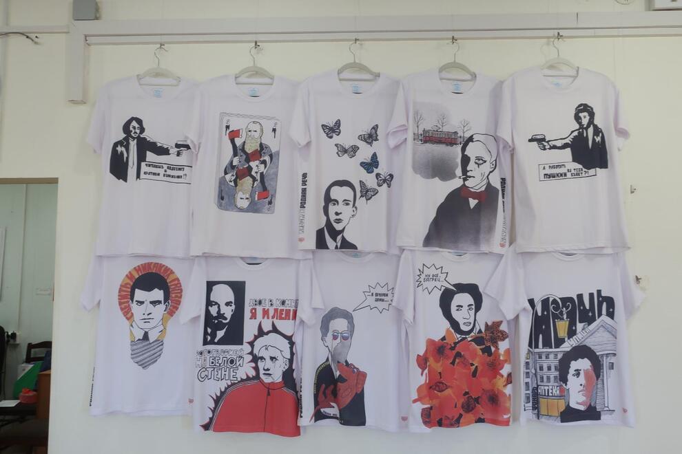 - Ребят никто не ограничивал в их творческом поиске, – говорит Наталия Гарева. – Они сами выбирали мемы для принтов – какие-то смешные факты из жизни или дневниковые записи наших классиков. Очень интересная и востребованная коллекция получилась! Кстати, этот курс уже не раз представлял свои работы в Петербурге. На «литературные» футболки очень хорошо реагирует зритель, многие с удовольствием приобретают их.