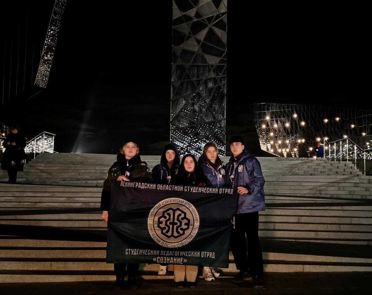 Торжественно-траурные церемонии проходили в два этапа – поздно вечером и утром следующего дня, поэтому помощь волонтёров потребовалась в оба дня. В их число вошли члены студенческого педагогического отряда «Сознание» Ленинградского областного регионального отделения Российских студенческих отрядов: Анна Триман, Дмитрий Ходырев, Арина Васильева, Айдар Ахметов и Дарья Быкова. Также участие приняла руководитель отряда – Эльвира Стан.