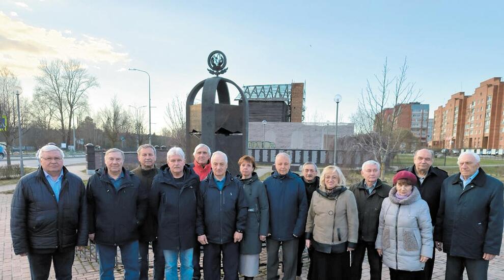 На фото: Члены правления Сосновоборского отделения Союза «Чернобыль» у мемориала Ликвидаторам ядерных аварий и катастроф в Сосновом Бору