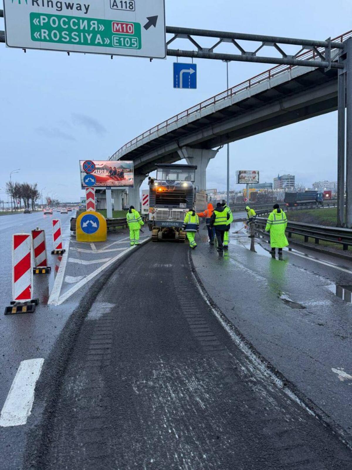 Дорожные работы с полным перекрытием двух съездов на развязке КАД с Пулковского шоссе перенесли по погодным условиям