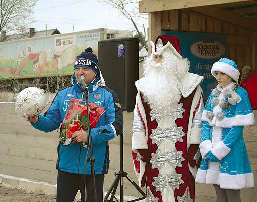 После вручения памятных грамот на площадке появились Дед Мороз и Снегурочка, что придало событию волшебства. А 3-го января на площадке прошла первая официальная игра – дети сыграли со своими родителями.