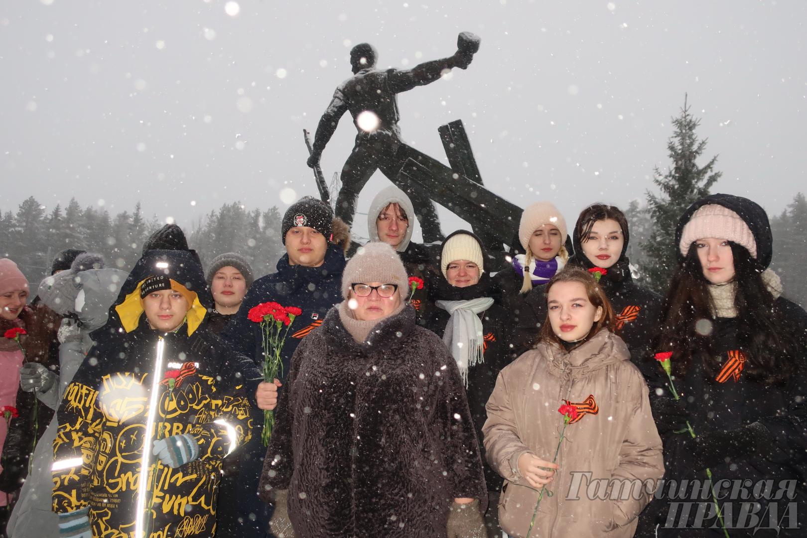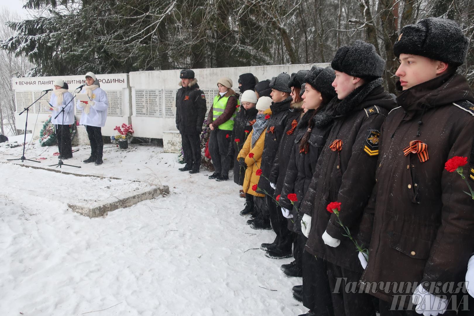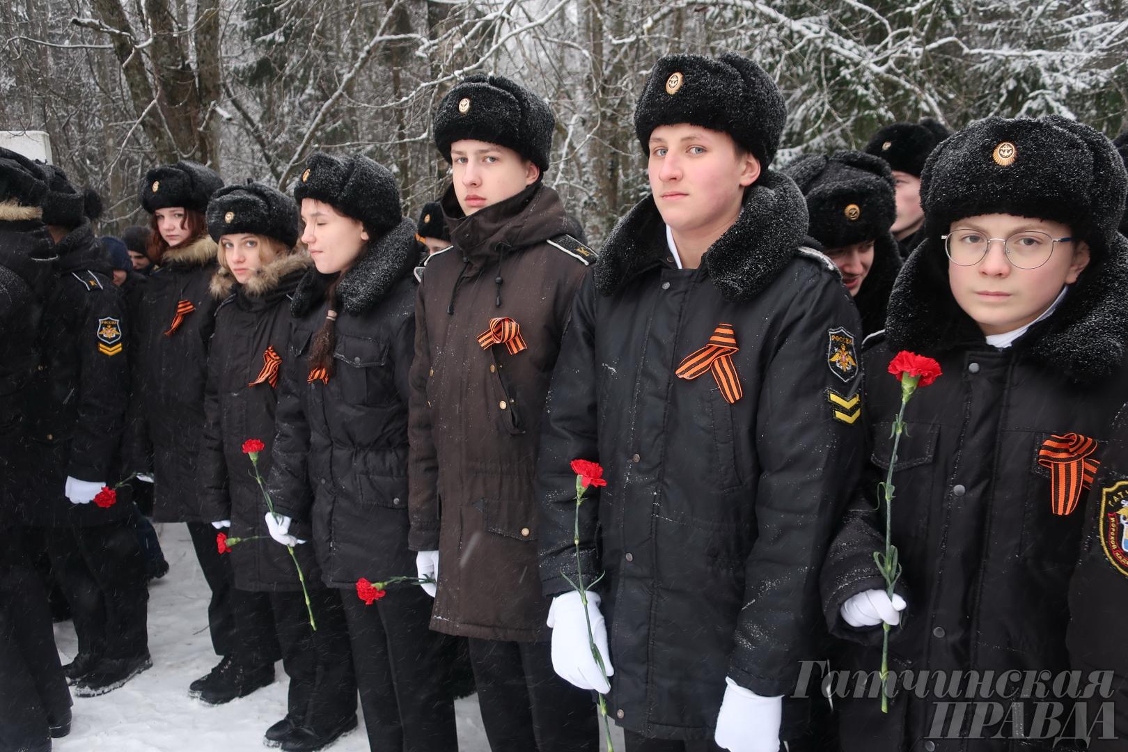 У каждого мемориала волонтеры Гатчинского Дворца молодежи рассказывали военную историю этих мест. Участники митинга почтили память героев защитников и освободителей минутой молчания и возложили цветы.