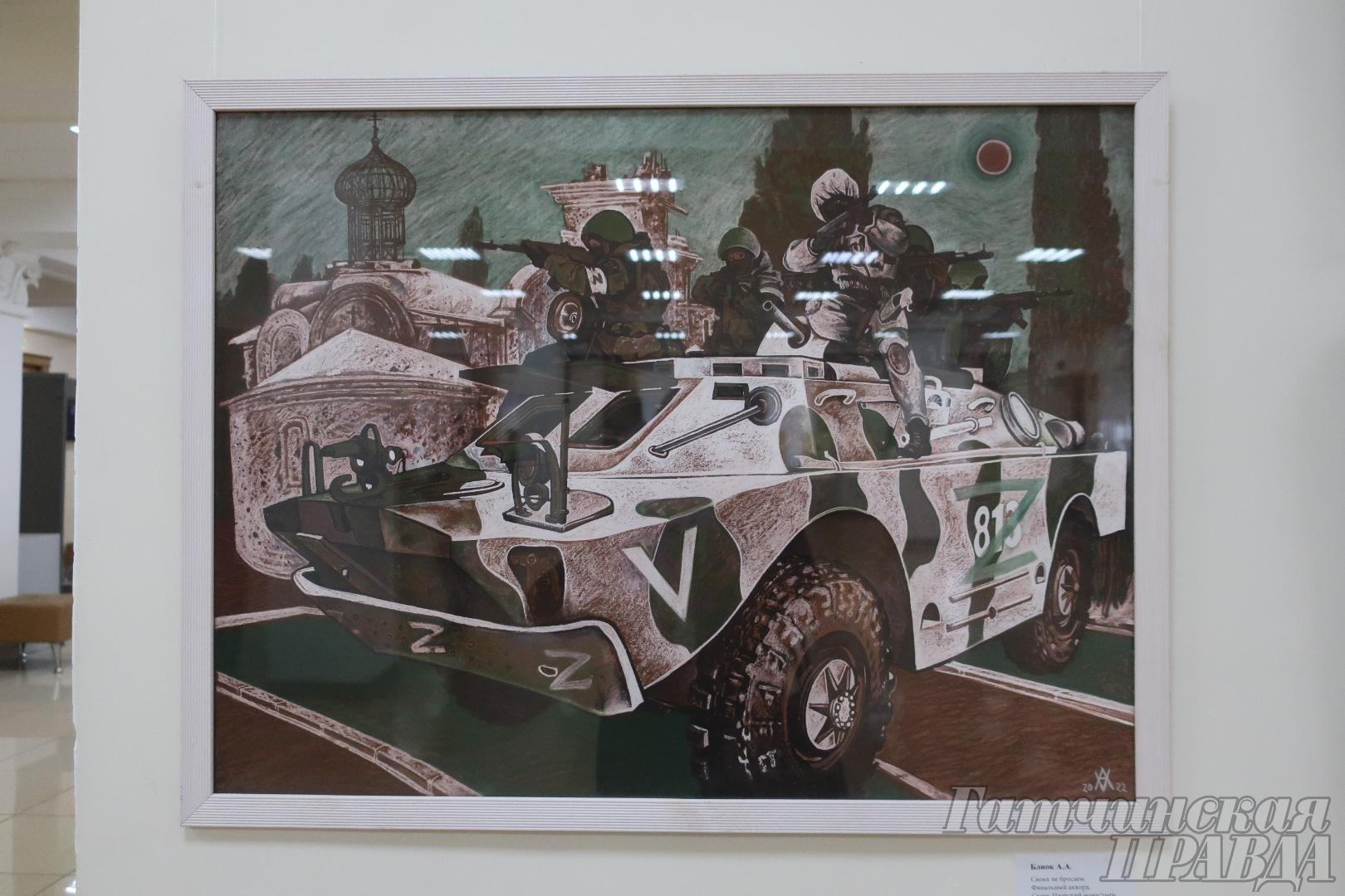 В рамках фестиваля в Гатчинском Доме культуры открылась выставка «Кистью и штыком», на которой представлены произведения фронтовиков Великой Отечественной войны и современных художников, включая участников СВО.