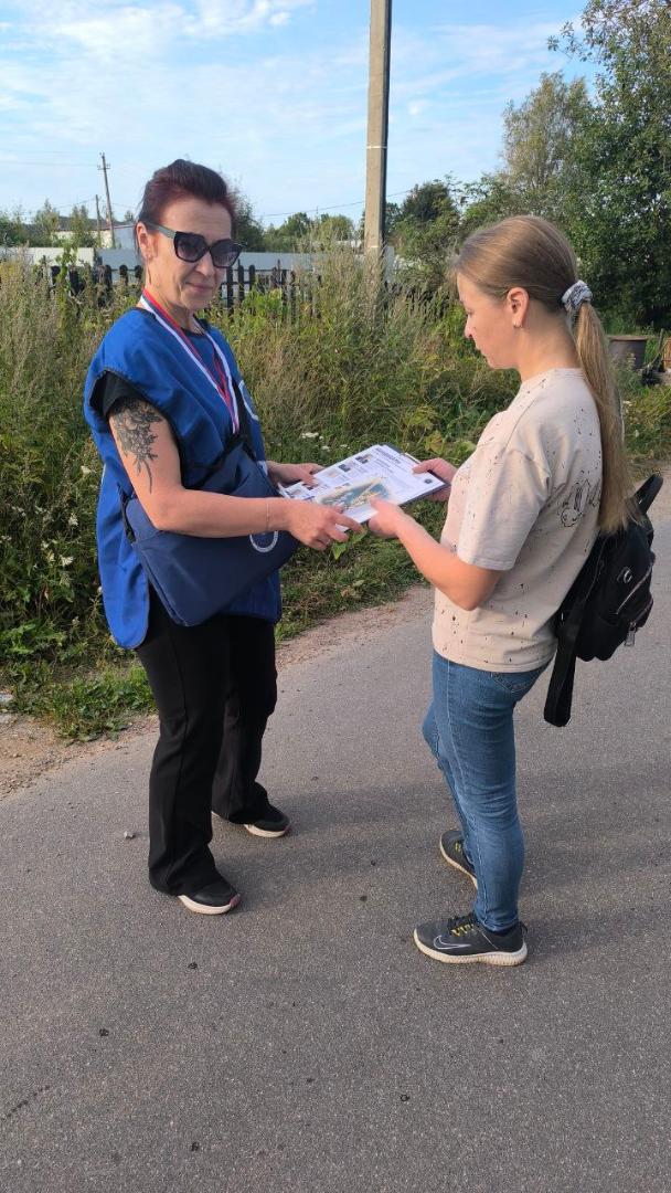 Обходчики приносят избирателям информационный материал с кандидатами на должность губернатора Ленинградской области, объясняют процедуру голосования, а также вручают красивое приглашение на выборы. В этом году приглашение имеет форму открытки. С одной стороны изображение города воинской славы Ленинградской области – Выборг, Тихвин, Луга или Гатчина, а с другой - пригласительный текст и адрес УИК. Такие открытки избирателям очень нравятся.