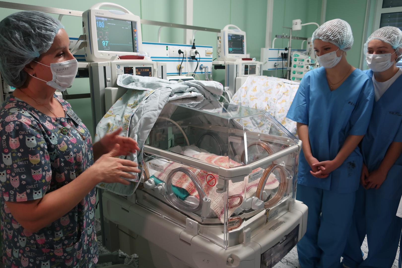 Надежда Прохорова рассказала ребятам о работе реаниматологов-неонатологов, которых называют спецназом неонатологии.