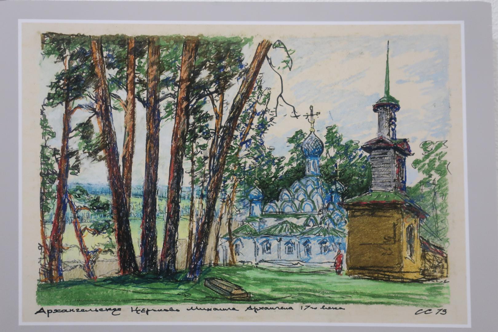 им. А.И. Куприна представлены рисунки и миниатюрные авторские копии из семейной коллекции Светлицких, хранящиеся в фонде музея-усадьбы «Суйда». Эти работы по большей части относятся к 1970-м годам, написаны с натуры и имеют особую ценность. Как талантливый архитектор Сергей Павлович четко передавал архитектурный облик построек пушкинского времени. Работая с натуры, он видел и чувствовал поздние пристройки, отбрасывая их, он сразу реконструировал пейзаж и здания, приближая их к пушкинскому времени.