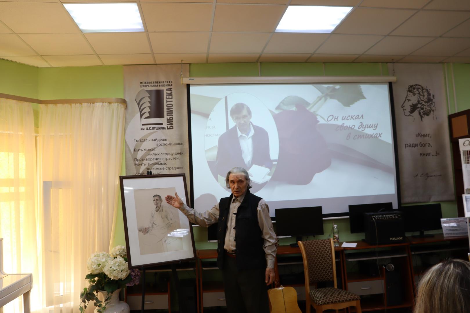 Роман Волков, музыкант и давний соавтор Евгения Докучаева, исполнил под гитару несколько песен на стихи поэта. Трогательное, щемящее сердце чувство. Всего два с небольшим года назад они выступали дуэтом перед школьниками и гостями библиотек. И вот, приходится петь одному…