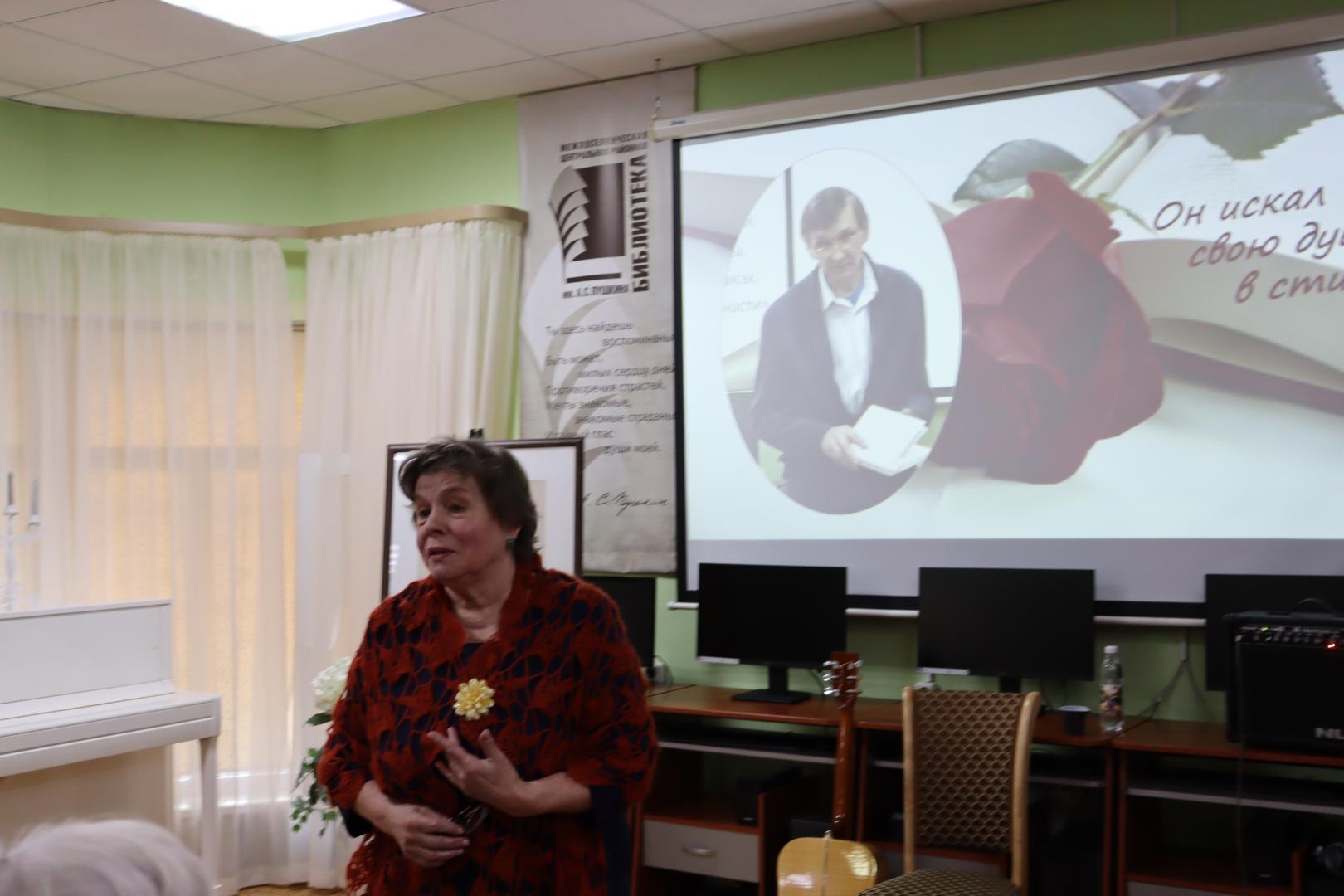 Перед началом встречи заведующая детским сектором библиотеки – Ольга Пугач – напомнила собравшимся, что в этот день, 19 октября, в России празднуется День отца. Праздник сравнительно новый, непривычный, но необходимый для укрепления семейных ценностей в стране. Символичным выглядело то, что первыми выступающими стали вдова и дочь Евгения Докучаева. Теплые искренние воспоминания Светланы Викторовны и Анастасии Евгеньевны задали тон всей встрече. От них мы узнали об истории создания сборника «Звезды падают в снег», который был издан спустя год после ухода мужа и отца.