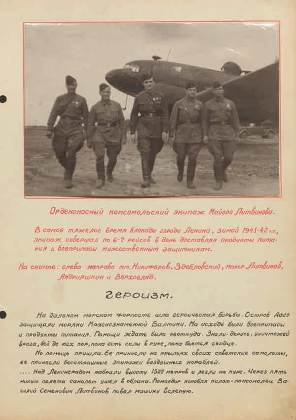 На портале Президентской библиотеки можно ознакомиться с рукописным альбомом «Отчет о боевой и политической работе комсомольцев 4-го Отдельного авиационного полка Гражданского Воздушного Флота» (Ленинград, 1947?). В альбоме собраны фотографии, сводки боевых действий, вырезки из газет.