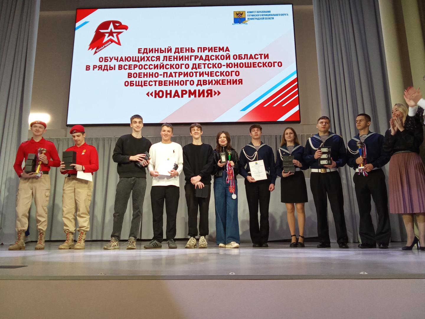 В Гатчине прошло торжественное мероприятие, посвященное Единому дню приема обучающихся Ленинградской области в ряды Всероссийского детско-юношеского военно-патриотического общественного движения Юнармия.
