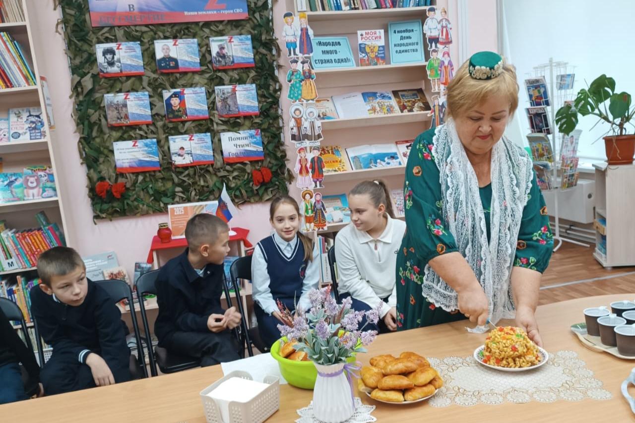 Но главным сюрпризом стало настоящее путешествие в Татарстан, которое подарила детям наша активная читательница — бабушка Нурия из деревни Акколово. Она окружила ребят таким теплом и гостеприимством, что библиотека на мгновение превратилась в уголок солнечной республики.