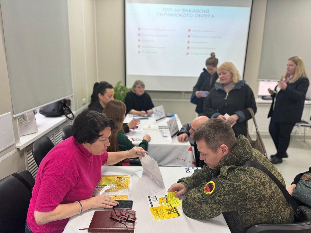На ярмарке вакансий также присутствовали сотрудники МФЦ, соцзащиты, фонда предпринимательства, Гатчинской КМБ, чтобы сразу отвечать на вопросы, касающиеся их деятельности.